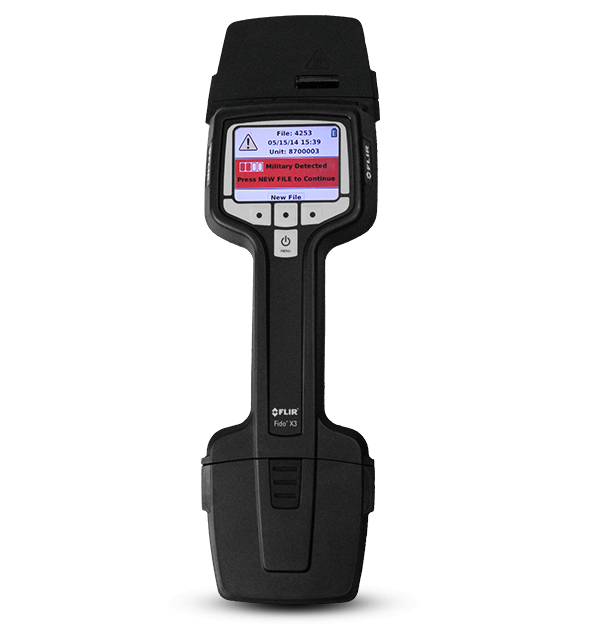 El detector de rastros de explosivos (ETD) de FLIR, el Fido X3, agiliza la toma de decisiones en el lugar con informes de amenazas en diez segundos a través de alarmas intuitivas autorizadas/no autorizadas (go/no go). Con una carcasa de magnesio y sello a prueba de salpicaduras, su robusto diseño cumple con las rigurosas especificaciones de las normas MIL-STD-810G e IP54. El Fido X3 comienza en frío en cinco minutos, contiene una batería de larga duración de ocho horas y se despeja en segundos. Con miles de unidades enviadas a más de 40 países, el Fido X3 es un detector portátil de rastros de explosivos para usos críticos en materia de seguridad.